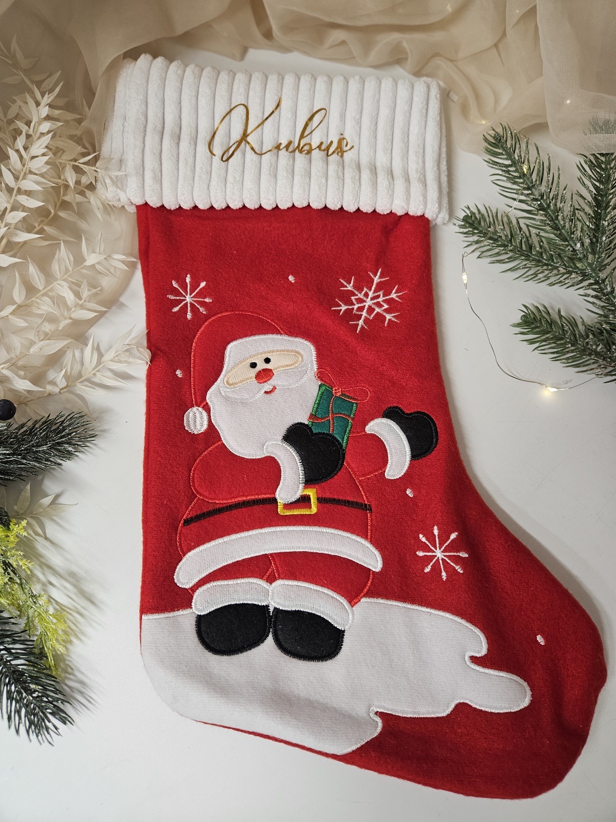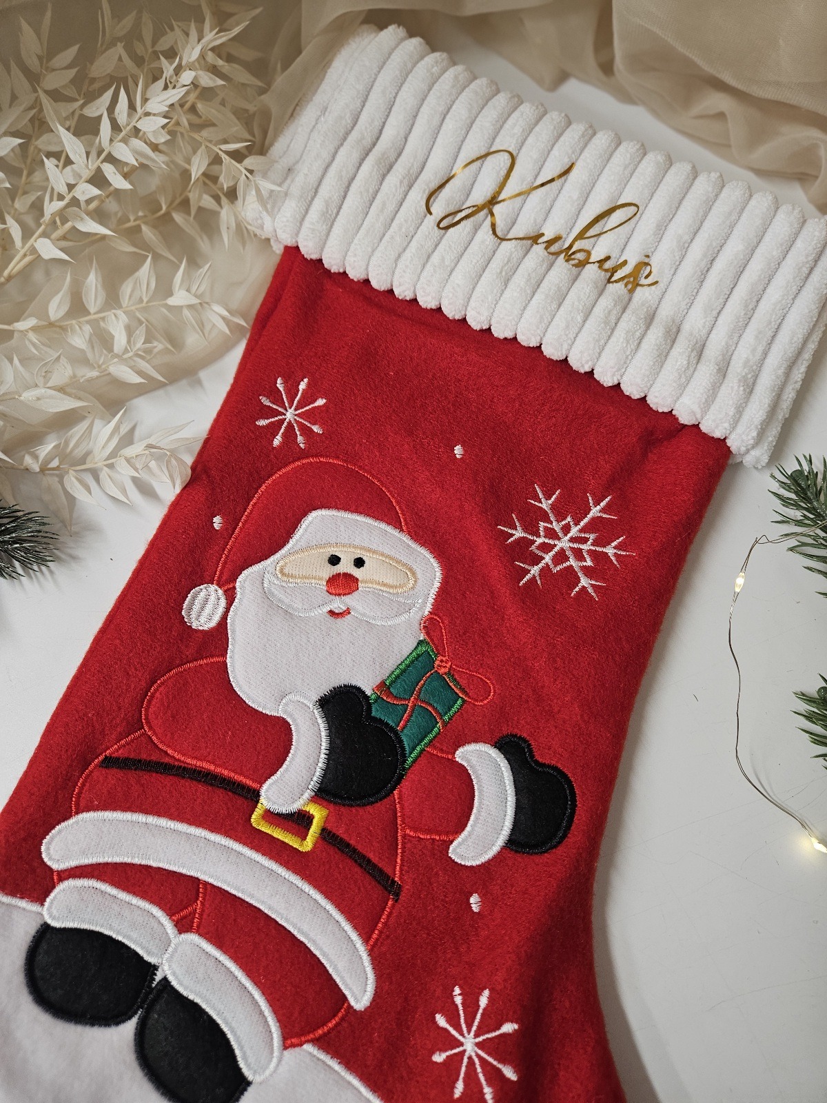 🌟 Skarpeta świąteczna z imieniem – wyjątkowa dekoracja na kominek
