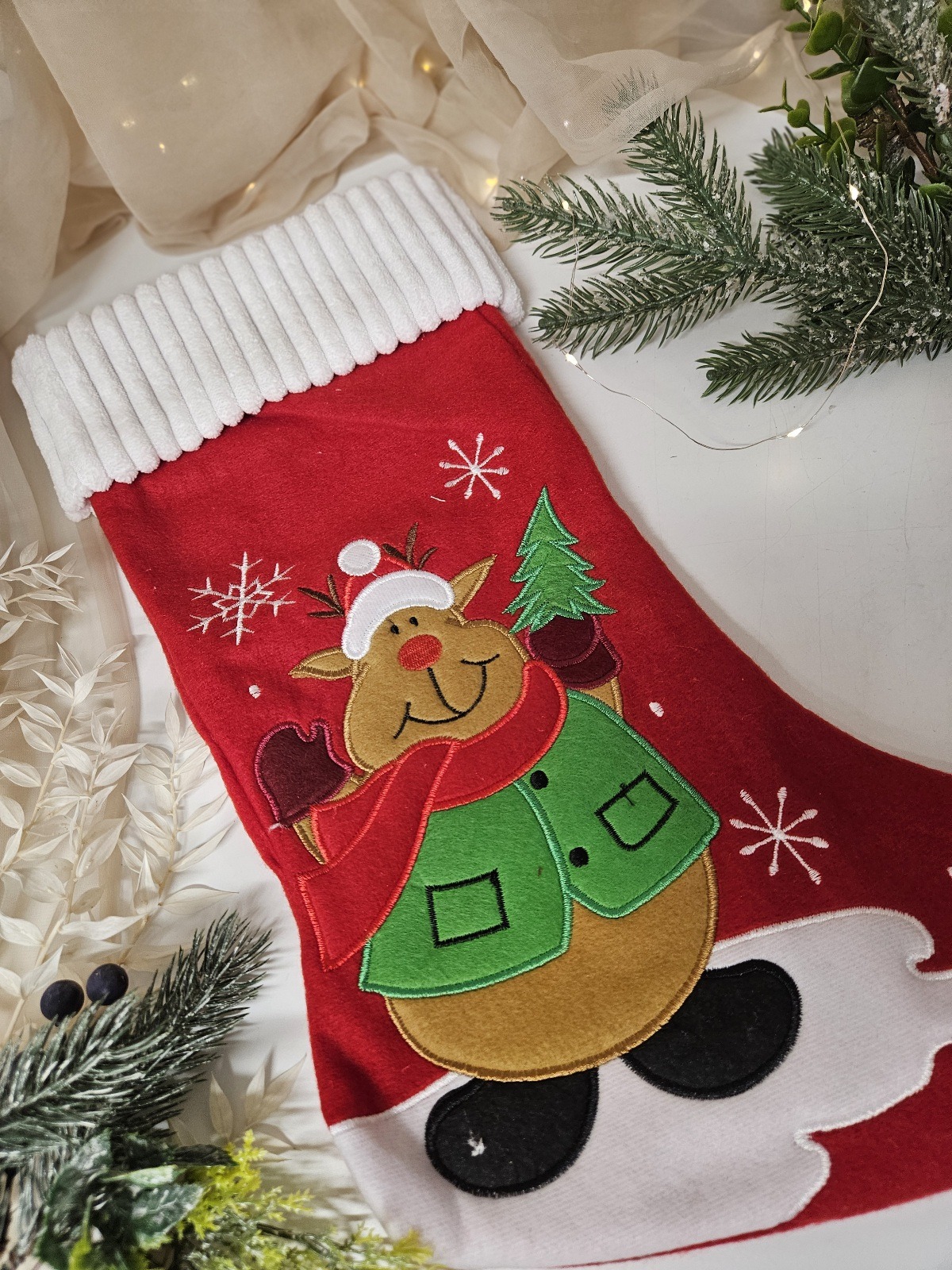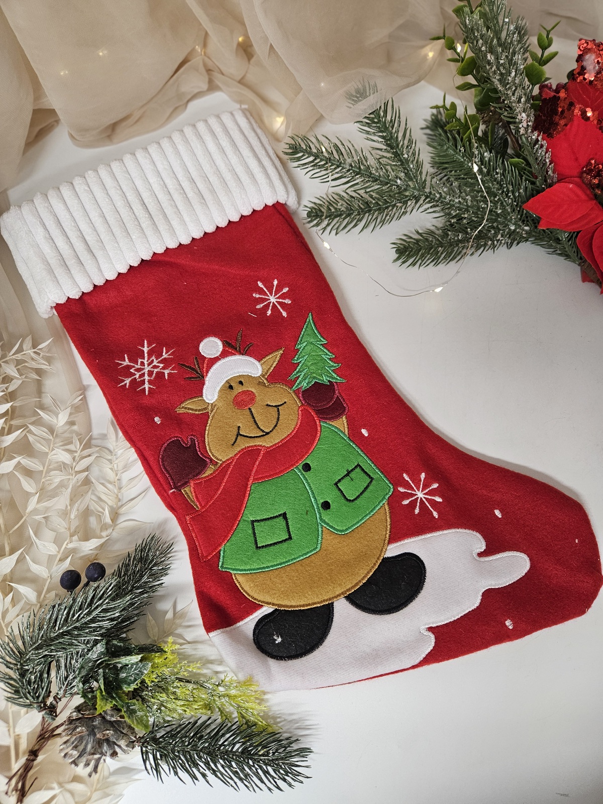 Dostępna w wielu pięknych wzorach, skarpeta świąteczna idealnie wpasuje się w każdy styl wnętrza – od klasycznego po nowoczesny. To doskonały pomysł na prezent lub dodatek do domowych świątecznych zdjęć.