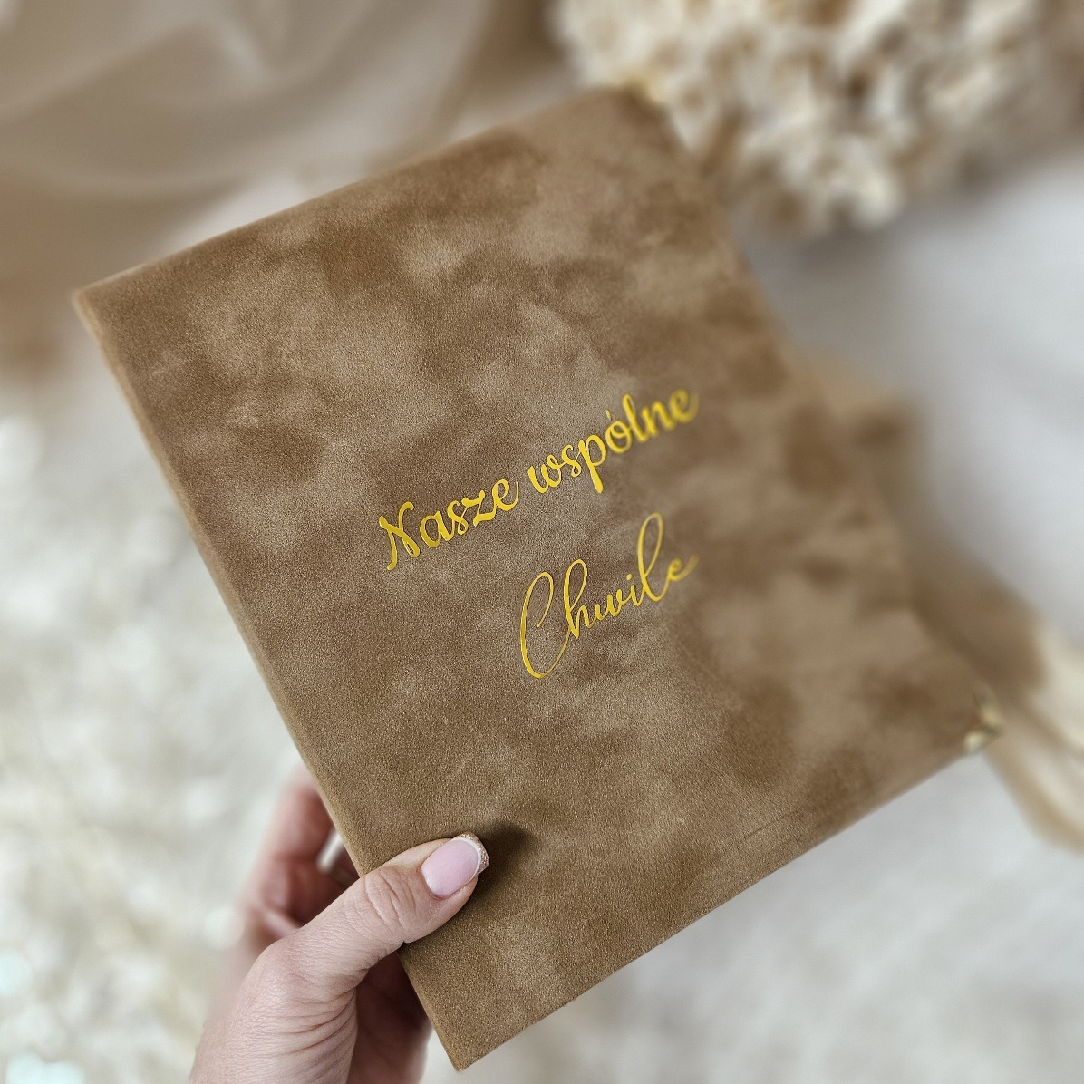 📸 Zatrzymaj najpiękniejsze chwile w welurowym albumie w kolorze jasnego beżu. Dostępny od ręki, gotowy, by wypełnić go Twoimi wspomnieniami.