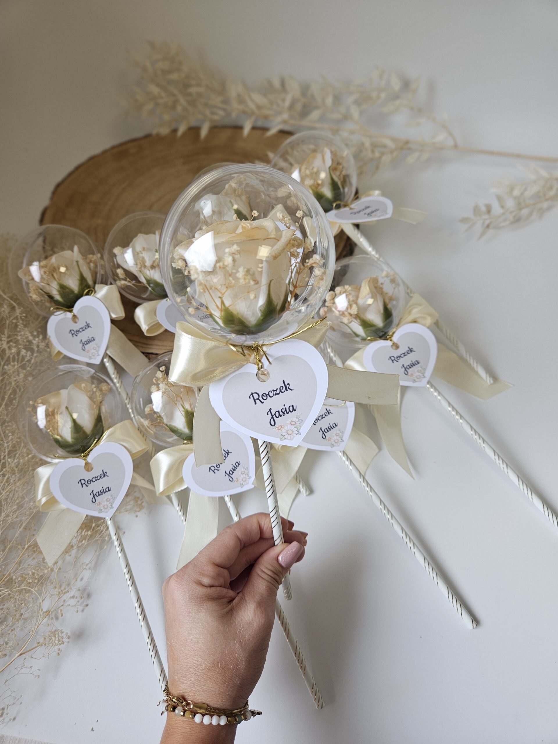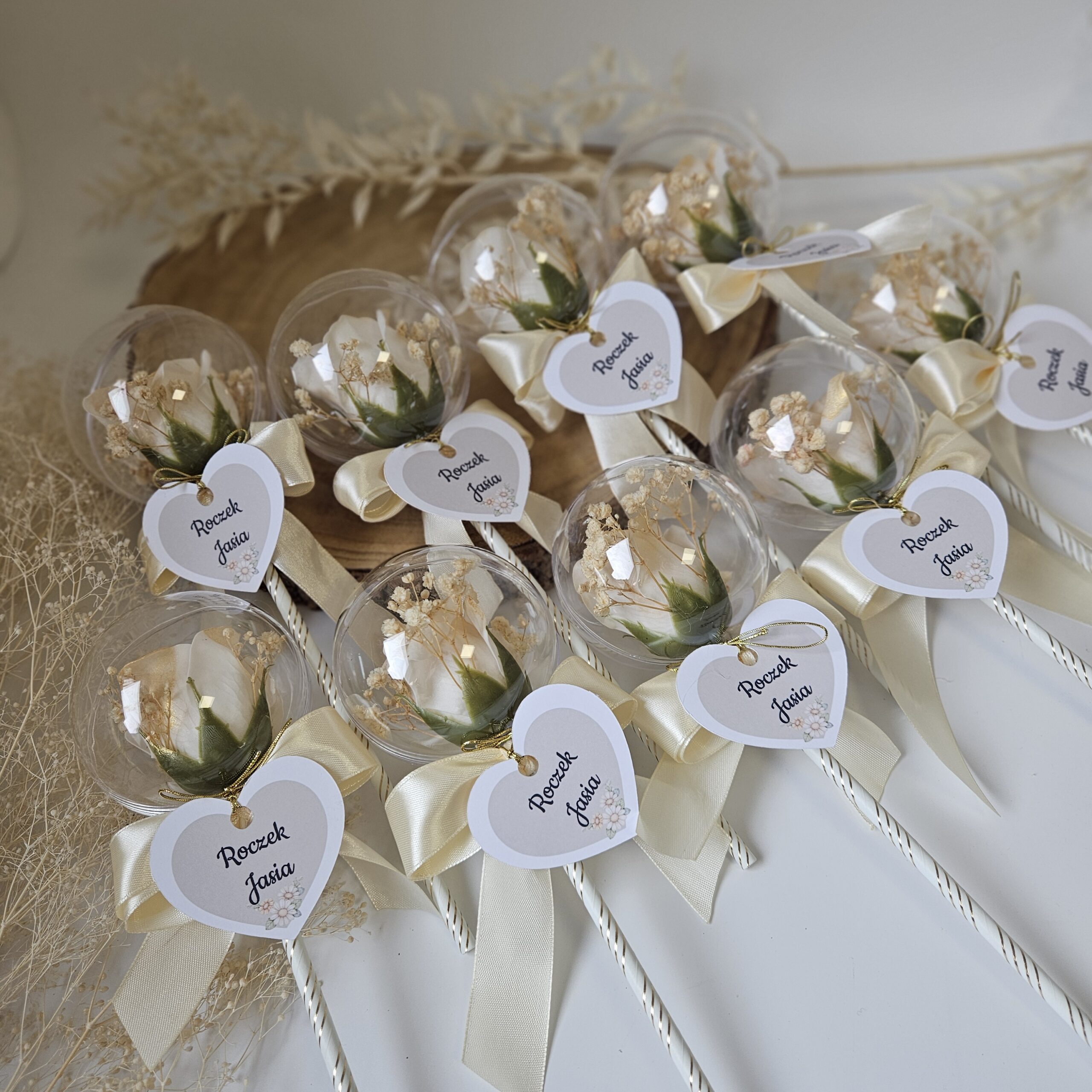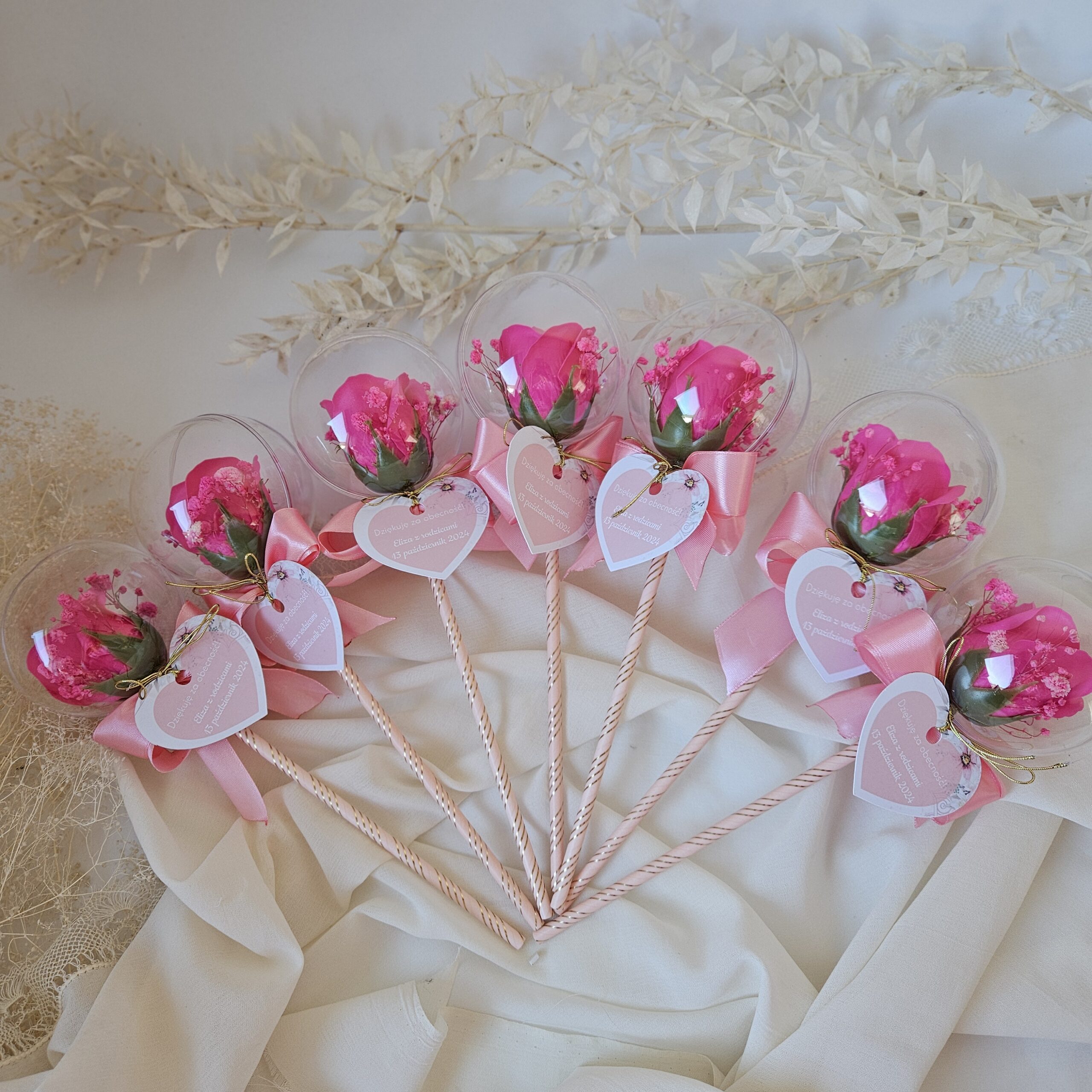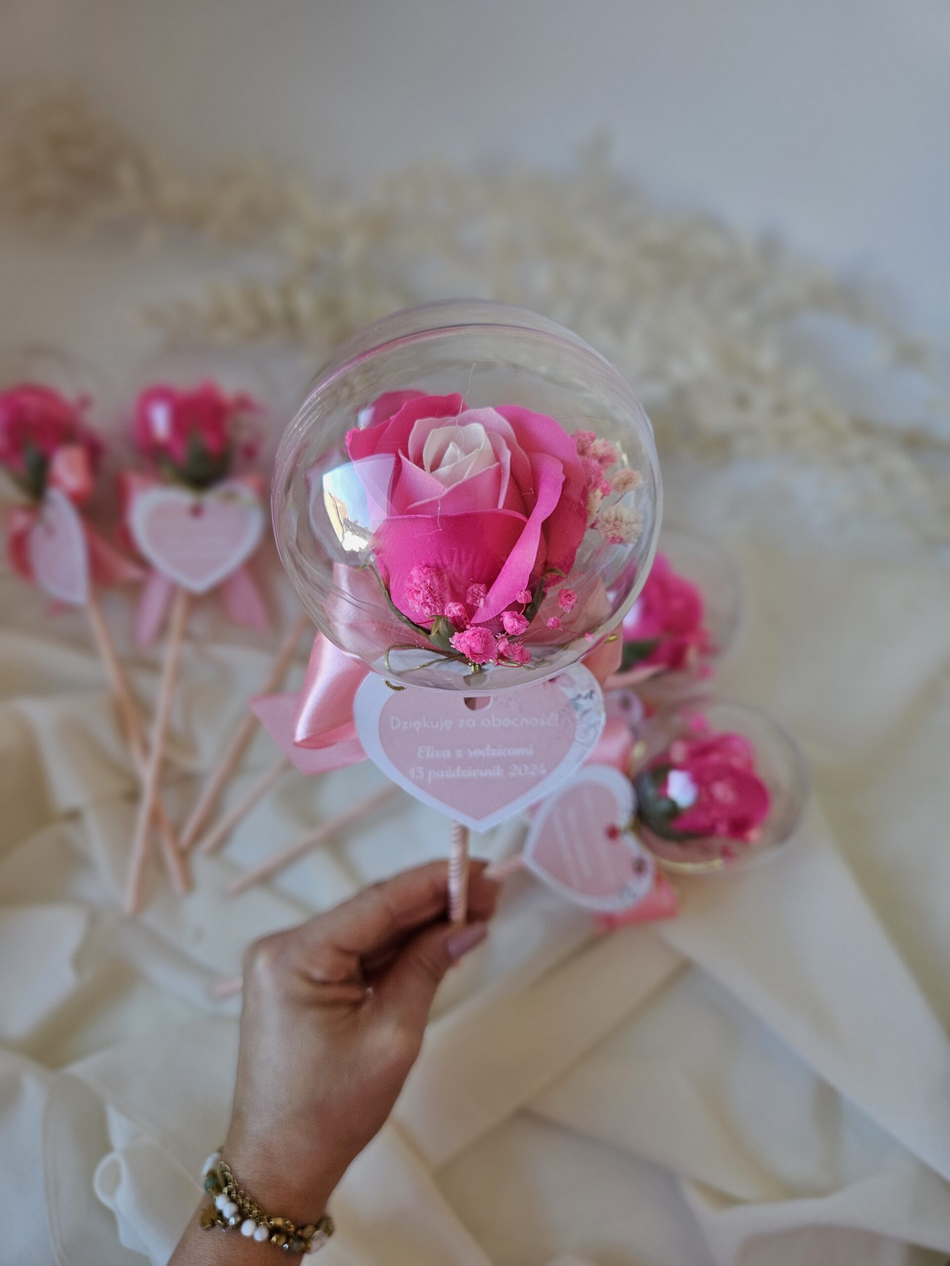 Wyraź swoją wdzięczność w niepowtarzalny sposób, obdarowując swoich gości piękną różą mydlaną zamknietą w akrylowej bańce. To nie tylko elegancki dodatek, ale również praktyczny upominek, który z pewnością zostanie zapamiętany. Nasze róże mydlane są ręcznie wykonane z najwyższej jakości składników, co sprawia, że są nie tylko estetyczne, ale także delikatne dla skóry. Każda róża jest starannie zapakowana, co dodaje jej wyjątkowego charakteru. Dzięki różnorodności kolorów, możesz dopasować je do tematyki swojej uroczystości, tworząc niezapomniane chwile dla swoich bliskich. Podaruj swoim gościom coś więcej niż tylko upominek – podaruj im wspomnienia, które będą ich cieszyć przez długi czas! Wybierz róże mydlane jako wyraz swojej wdzięczności i spraw, by każda chwila była jeszcze bardziej wyjątkowa.