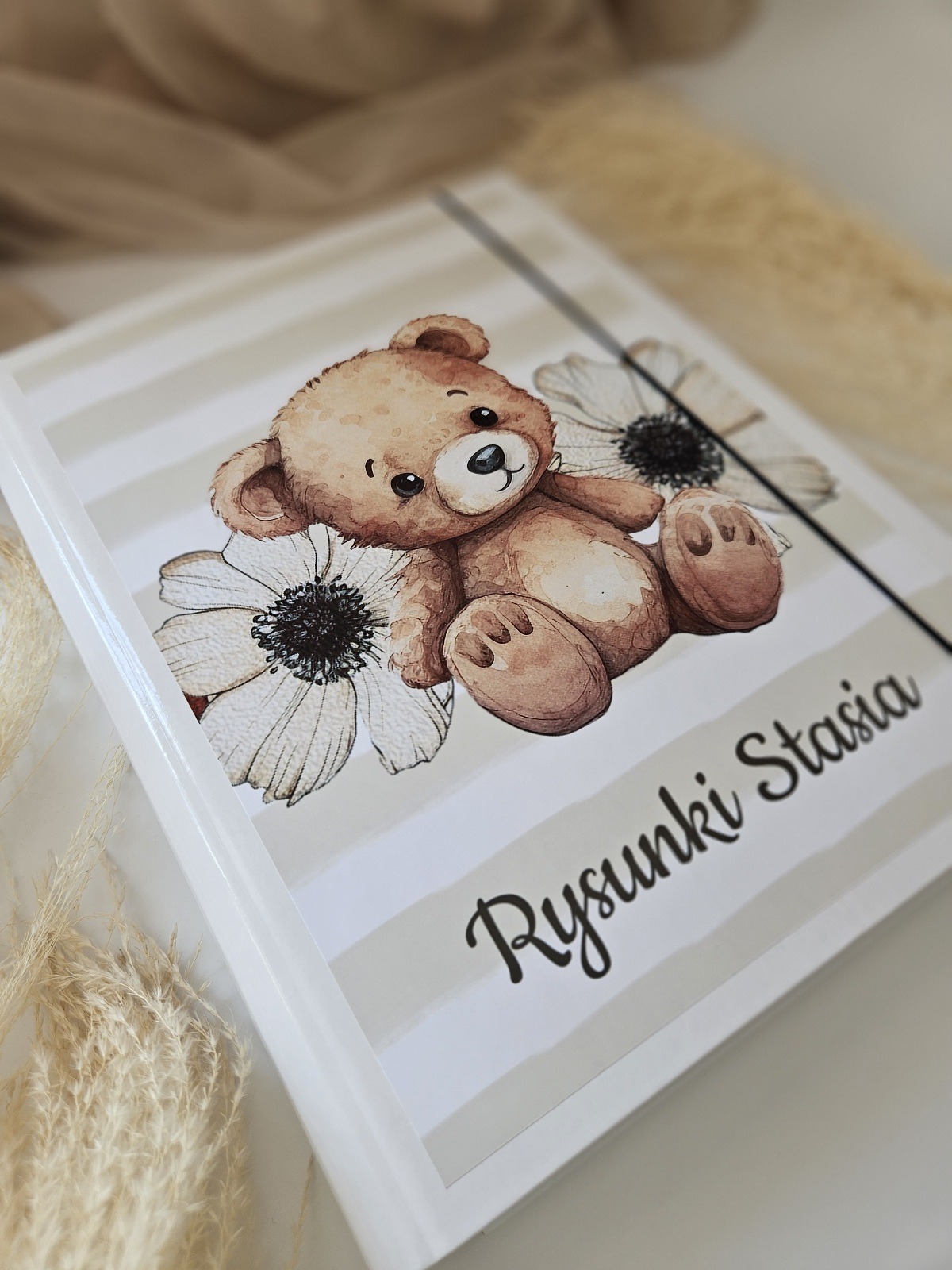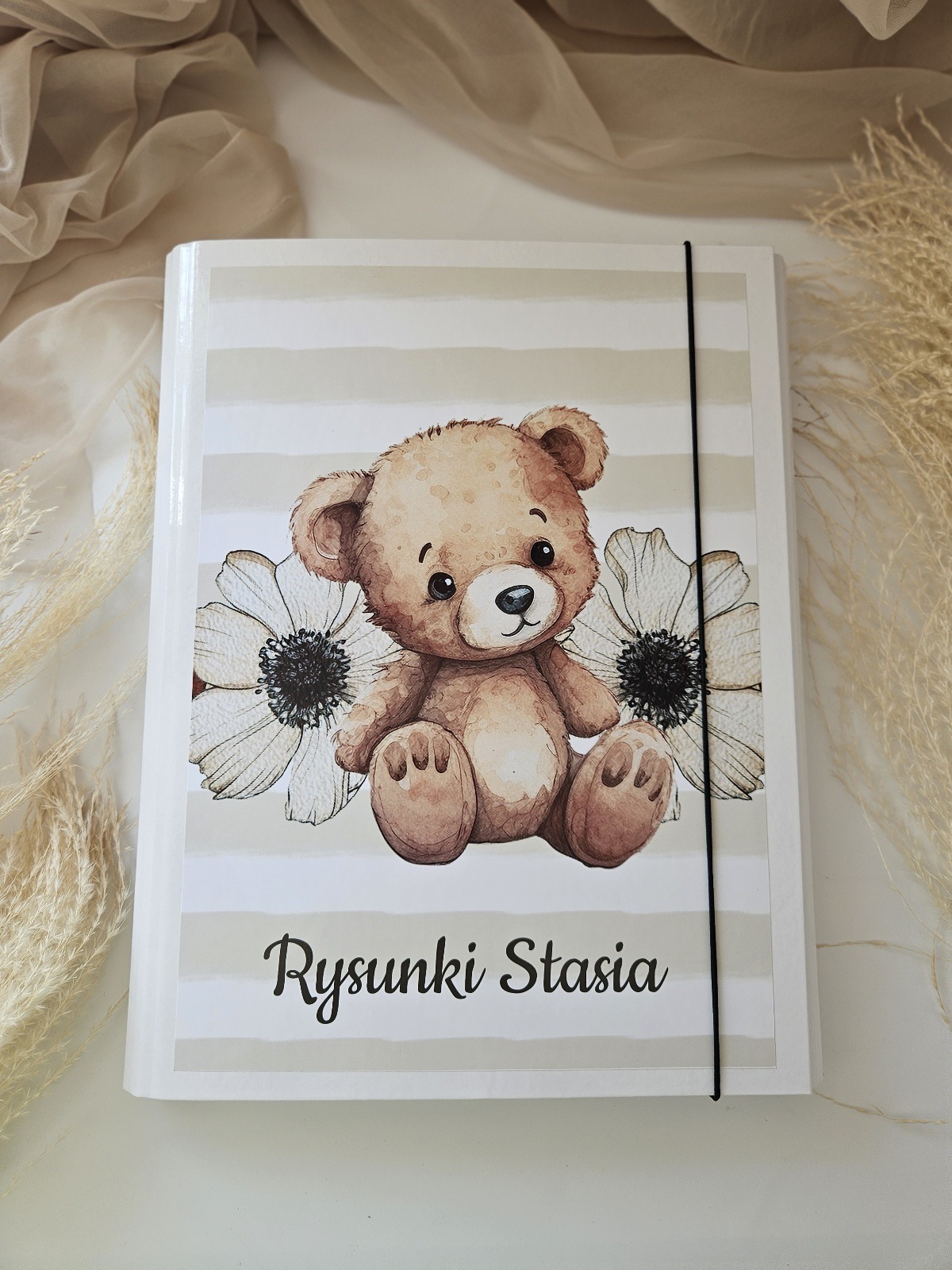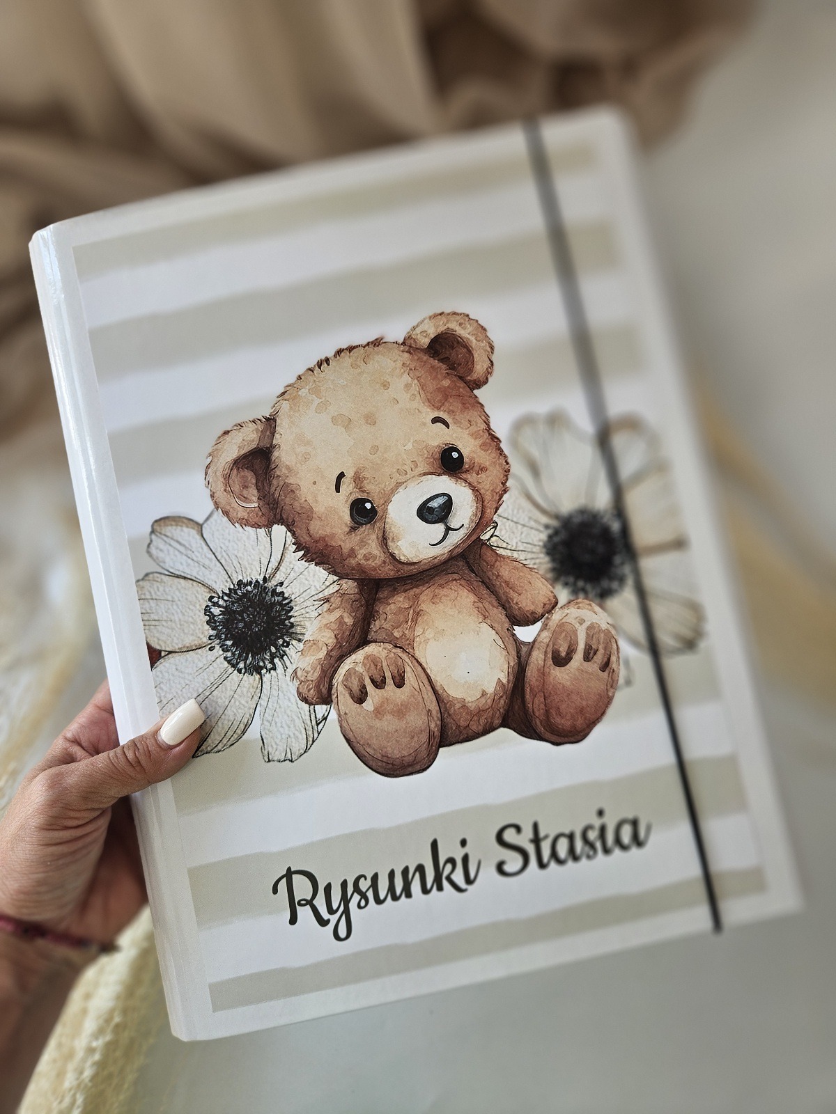 Teczka na rysunki dziecka z personalizacją – biała A4 Miś